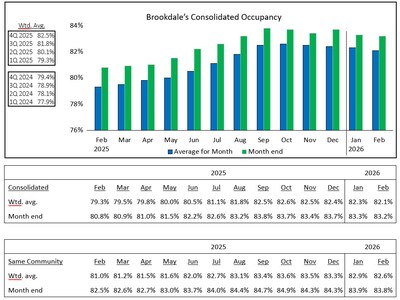 View original content to download multimedia:https://www.prnewswire.com/news-releases/brookdale-reports-february-2026-occupancy-302707776.html