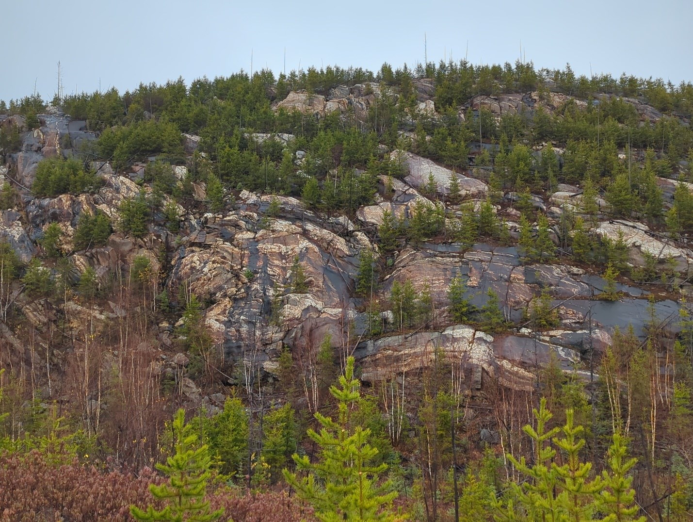 - Muscovite/garnet pegmatite bodies estimated up to 30 m wide